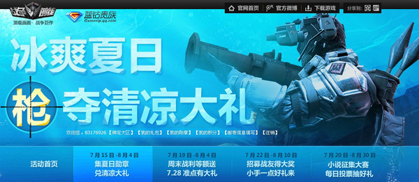 《战争前线》“冰爽夏日,枪夺清凉大礼”活动页面:http://wf.qq.com/act/a20130709summ/sub01.htm